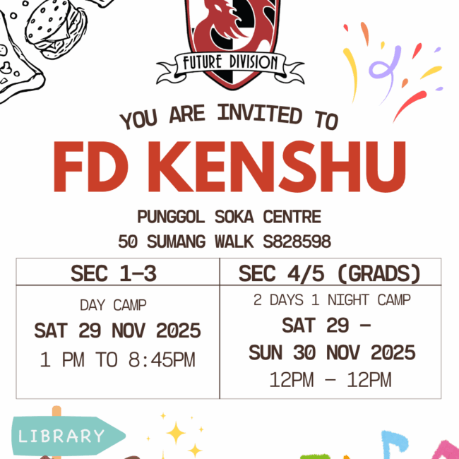📣 Calling all Future Division students (Sec 1–5)! You’re invited to our annual FD Kenshu (Training Course) — a time to learn, connect, and be