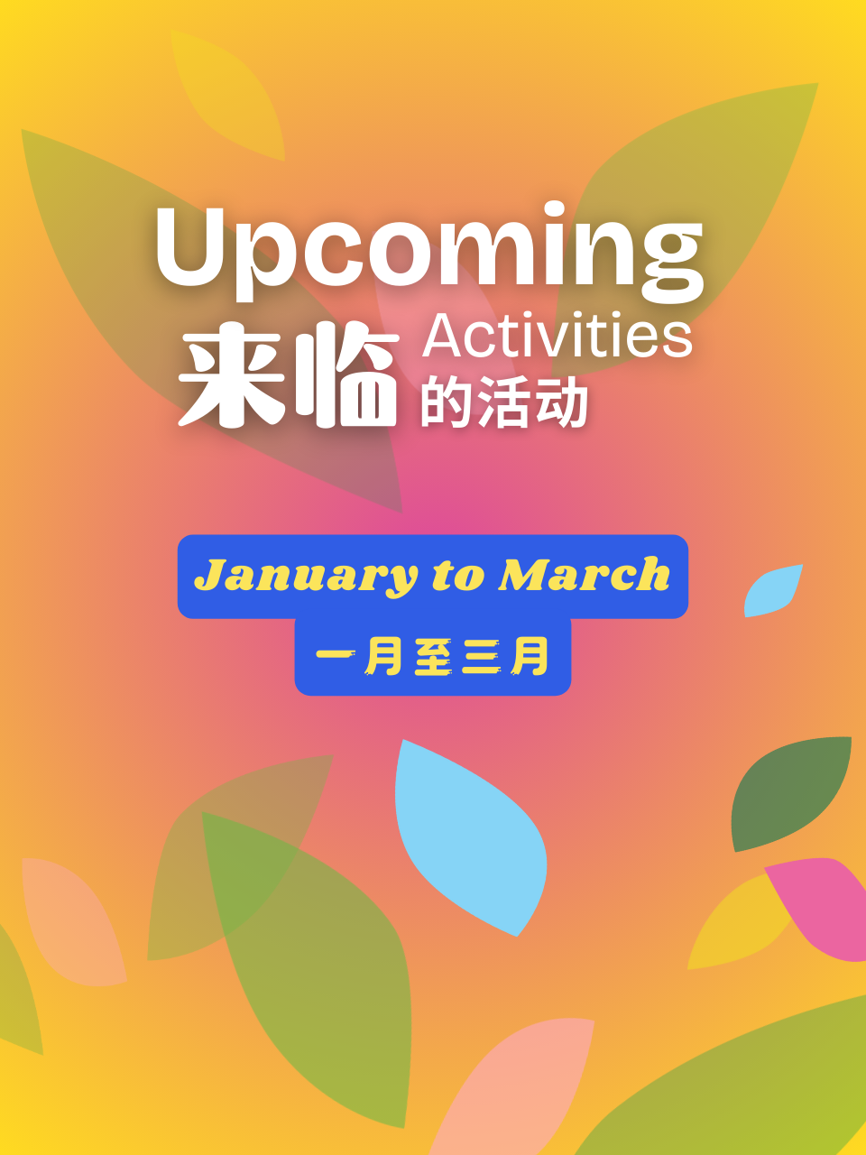 Here’s a peek at the upcoming activities from January through March.