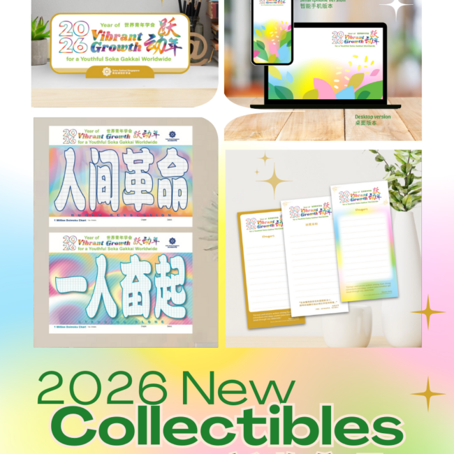 New Year, New Collectibles! Download the brand new SGS Collectibles featuring 2026 SGI theme – Year of Vibrant Growth for a Youthful Soka Gakkai Wor