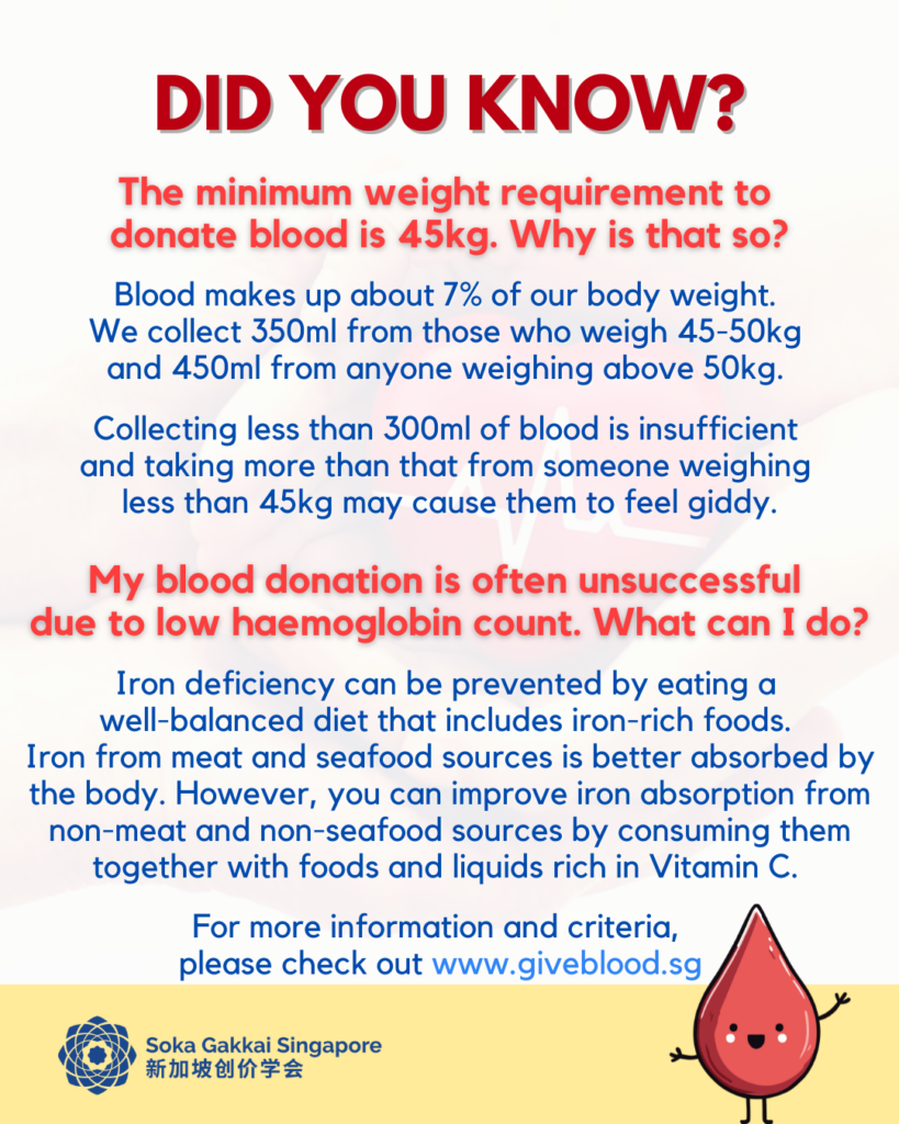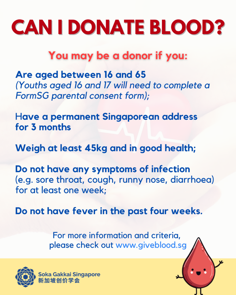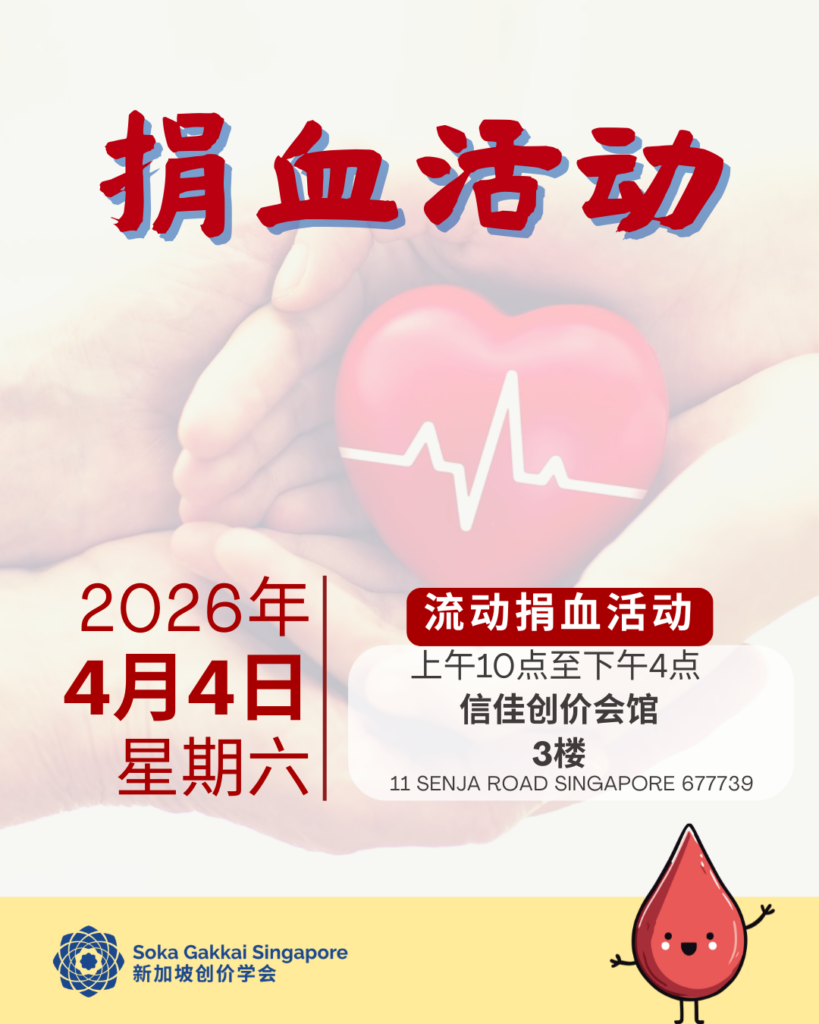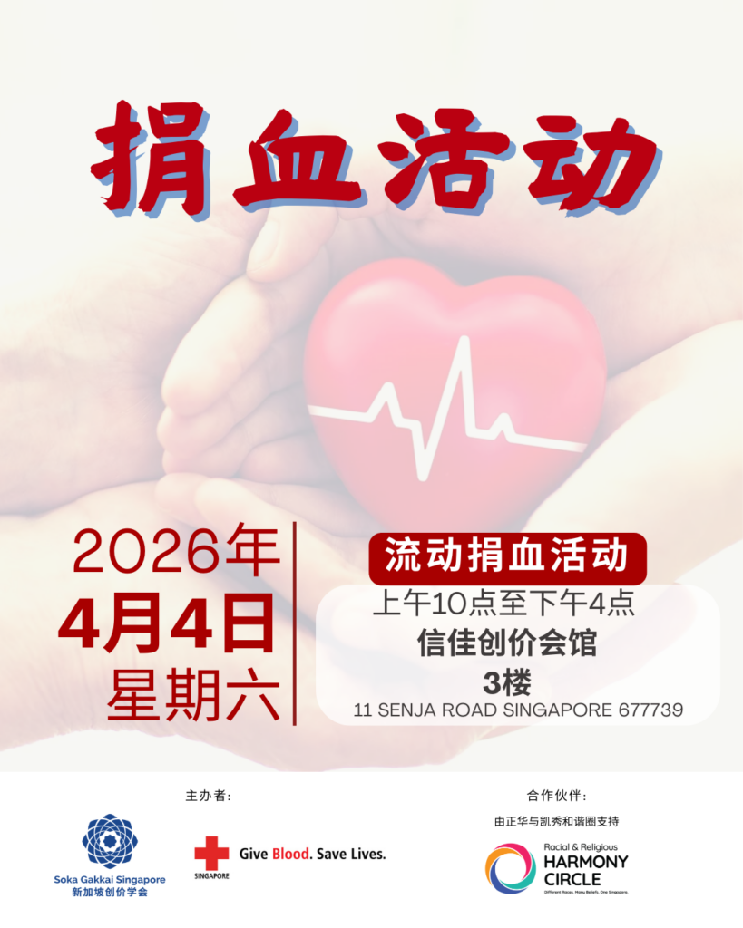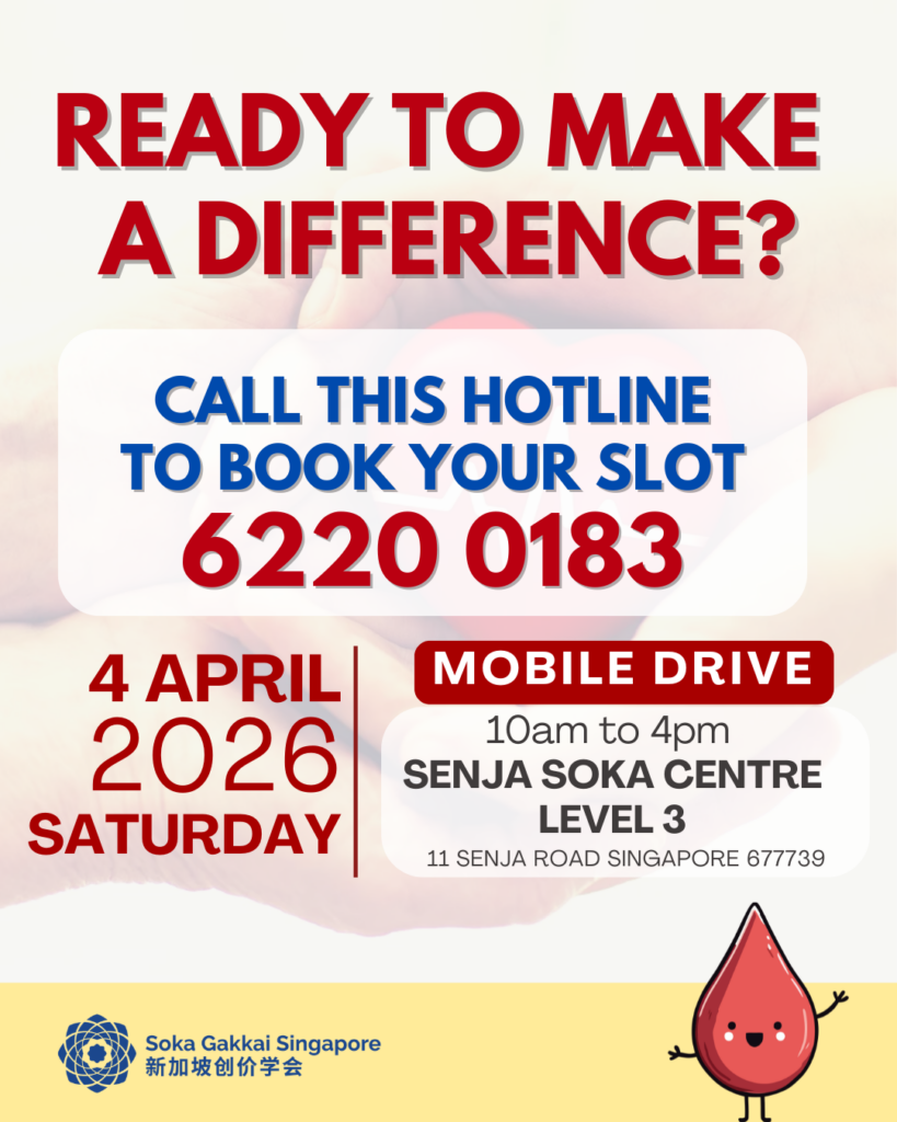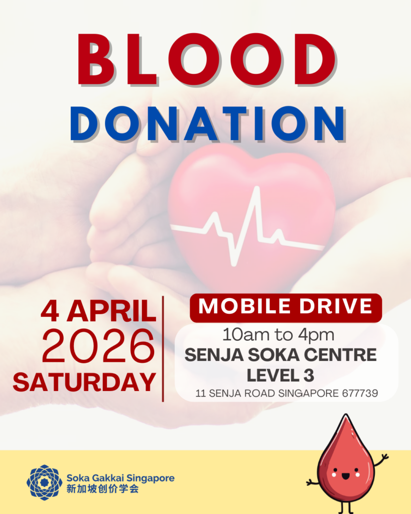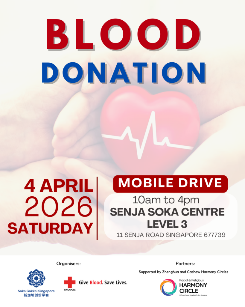 In collaboration with the Singapore Red Cross Society, we will be holding a blood donation drive at Senja Soka Centre on Saturday, 4 April from 10am to 4pm.