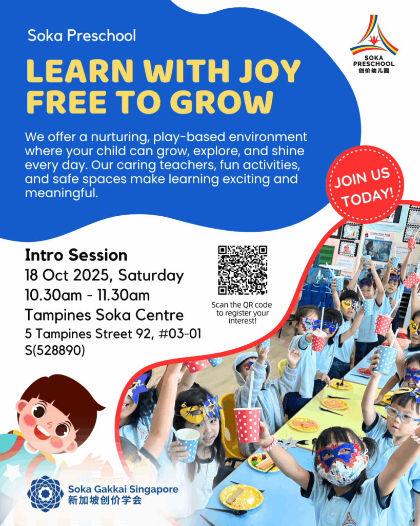 Soka Preschool now offers a full-day programme for N1–K2! 🎉🌱 Come join our Intro Session on 18 Oct 2025 for a school tour and meet our teachers!