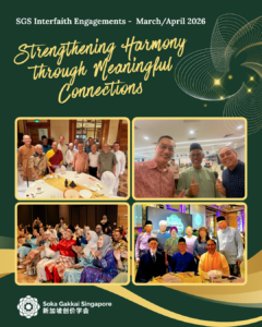 SGS is also committed to the Declaration on Religious Harmony that was introduced in July 2003. The spirit of the Declaration is regularly shared with the members at activities held to promote interfaith dialogue.