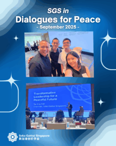 The Youth for Peace Symposium was initiated by the SGS Student Division to commemorate the 60th Anniversary of the formation of the Soka Gakkai Student Division in 2017. Through the sharing of SGI President’s annual Peace Proposal submitted to the United Nations to address key prevailing societal issues, the Symposium aims to bring forth the passion and power of the Student Division and Youth, and trailblaze the way for peace throughout the world.