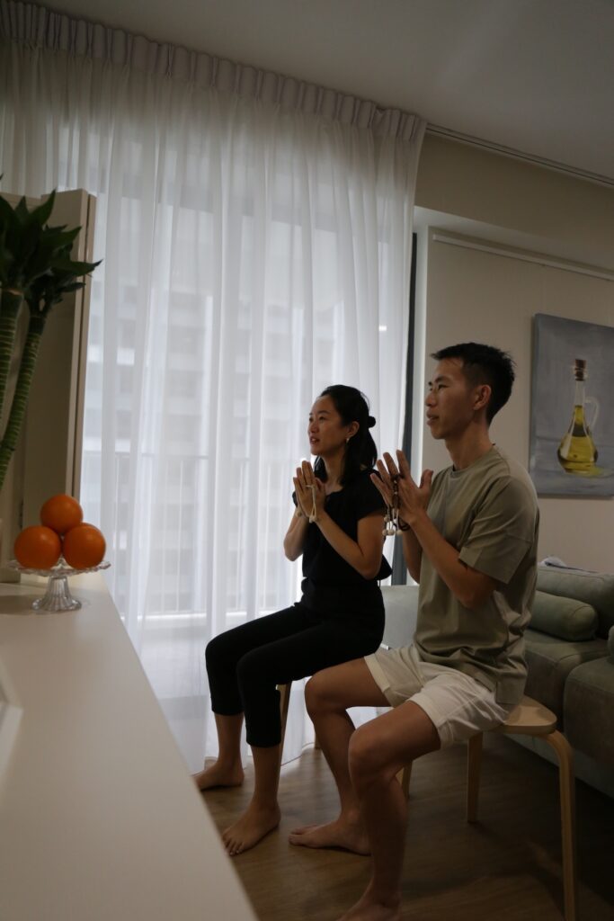 Vincci and her husband Lawrence begin their day by chanting together. They also engage in jovial Buddhist discussion, enabling each other to deepen their faith and understanding of life.