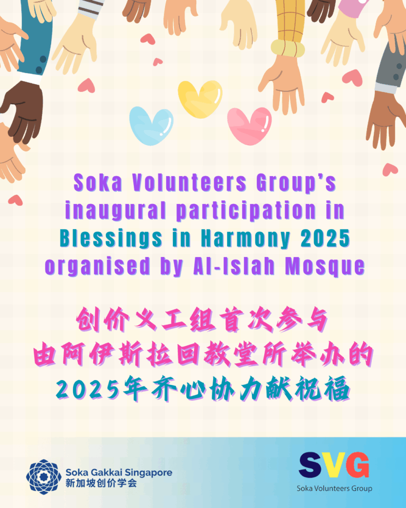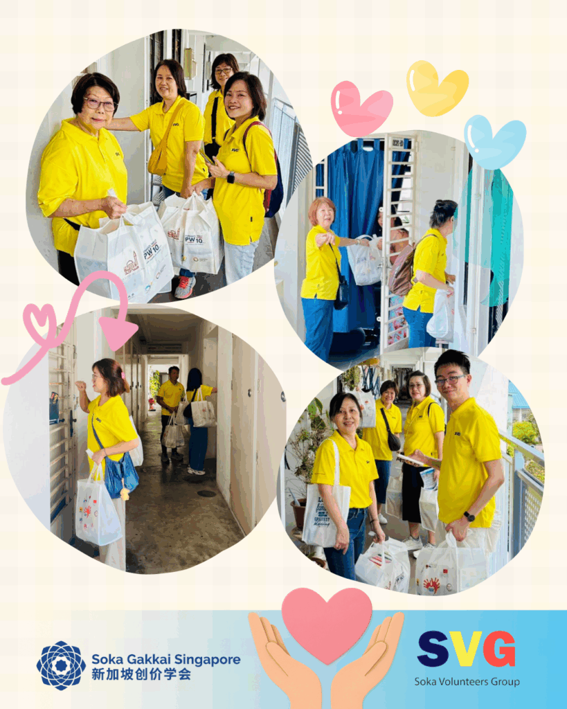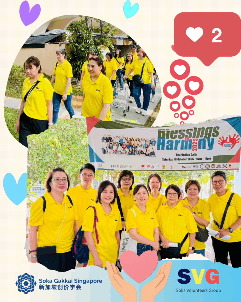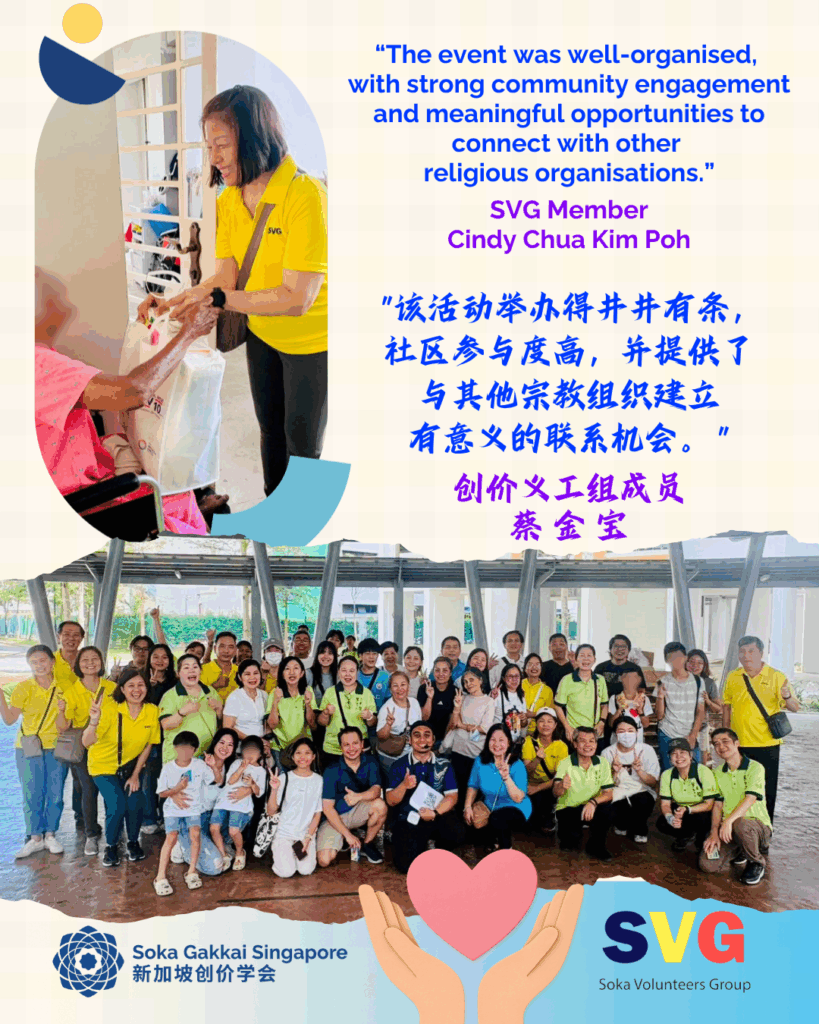 On 18 October, SGS extended our partnership to Punggol Field for the first time as some 30 Soka Volunteers Group members took part in Blessings in Harmony 2025 organised by Al-Islah mosque. This annual activity is into its 8th year where volunteers from various religious organisations would come together to prepare goodies bags for about 2,400 residents.