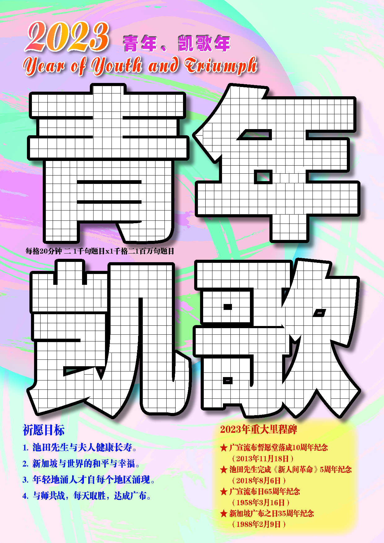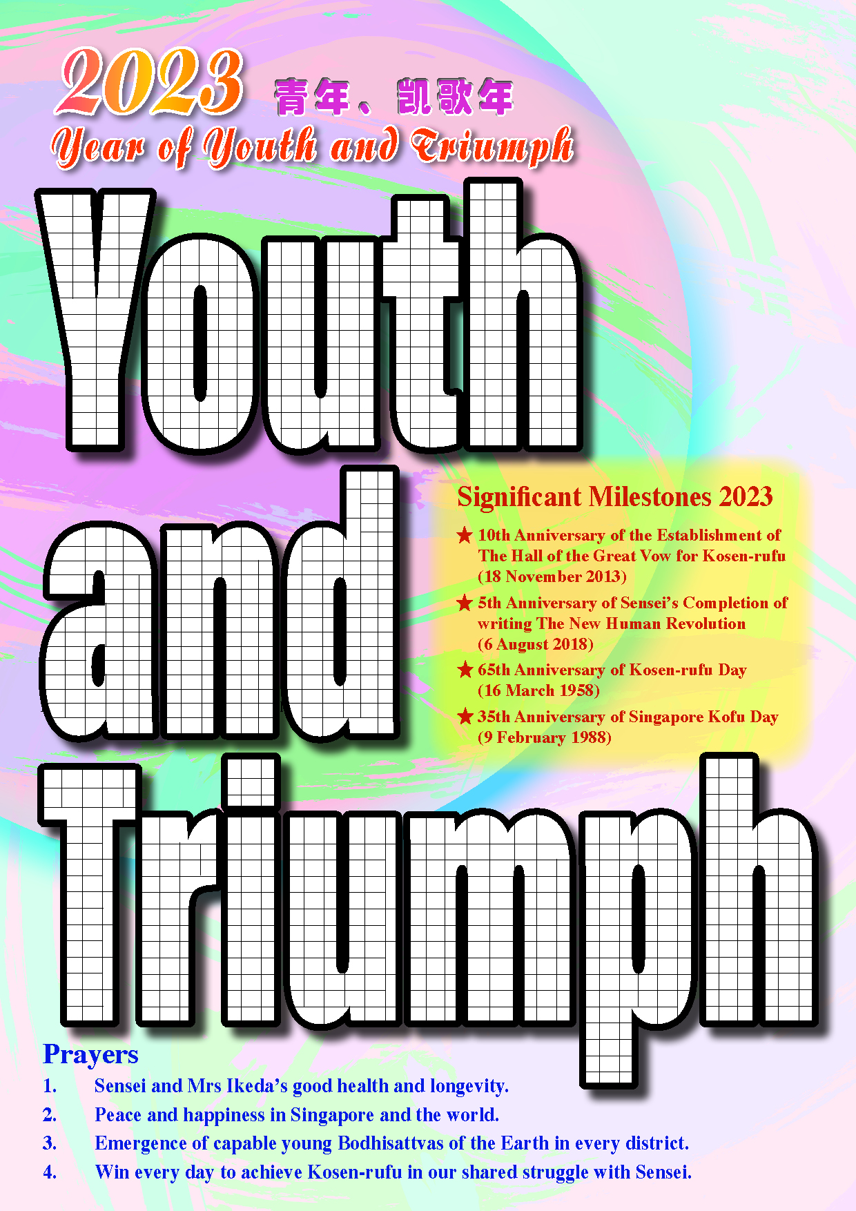 The Soka Gakkai theme for year 2023 has been declared as the ‘Year of Youth and Triumph’. To usher in this brand new hope-filled year, we have prepared a series of collectibles for everyone. Do check out the one million prayer chart and zoom background for year 2023.